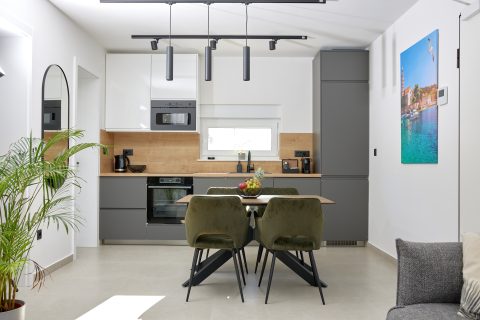 Apartment S4 is located on the first floor with large balcony that has sea view. The apartment has 2 bedrooms, a fully equipped kitchen, a living room with a sofa bed and a toilet/bathroom.